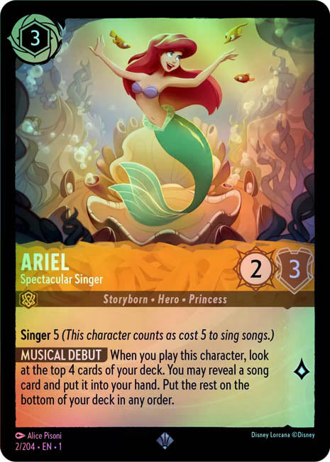 Musical Debut - When you play this character, look at the top 4 cards of your deck. You may reveal a song card and put it into your hand. Put the rest on the bottom of your deck in any order.